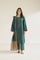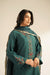 Embroidered 3-piece suit teal green, intricate embroidery detailed on front & sleeves, paired with stripe dupatta & pants.